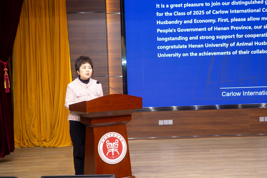 尹新明表示,作为河南省示范性应用型本科高校,学校自2021年与爱尔兰东南理工大学联合创办卡洛理工国际学院以来,始终坚守立德树人根本任务,构建了“一核五维”国际化人才培养体系,学生在各类高水平学科竞赛和创新创业大赛中屡获佳绩,充分印证了合作办学的高质量发展成效。她希望2025级新同学将个人理想融入国家发展之中,筑牢知识根基,锤炼专业技能,在学习实践中增长才干,努力成长为兼具家国情怀与国际视野的时代新人。
