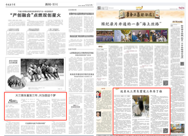 10.央媒报道我校学生朱赞文“为爱蓄发”的感人故事